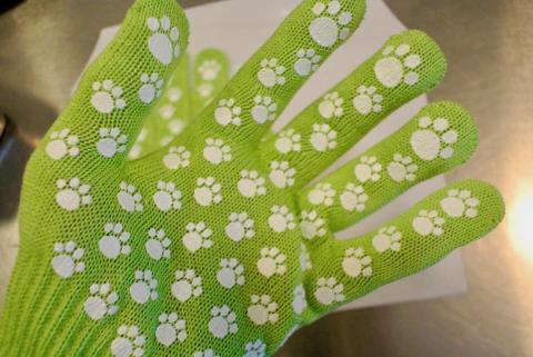 手のひら側 肉球模様の白いゴムが印刷されておりすべり止めとして機能します。