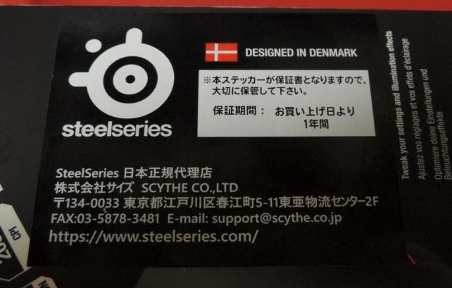 今回、私が入手したのは元々SteelSeriesの代理店だったゲートの物でなく、サイズが代理店となっているものだった。