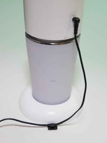 そして作動モードの切替えですが、まずケーブルを本体に挿すと上部の「電源ボタン」と「スマートリング・ランプ」が 3回点滅した後、「電源ボタン」のみ点灯した状態になります。
