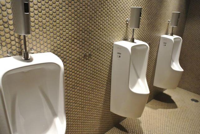 ドイツビールを楽しむゲーテ・インスティトゥートの化粧室に備わる男子用便器は