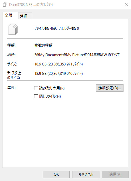 ビデオファイルのようなギガサイズではなく、普段扱いファイルで比較的容量の大きなファイルがデジカメのRAWファイルです。