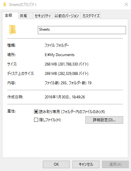 フォルダー分けされた、293個のスプレッドシートファイル合計約268MBのコピーを行いました。