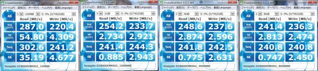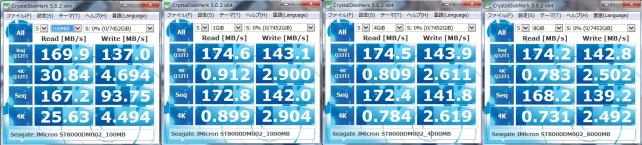 今回のレビュー対象機種であるDM002、やたら安い価格で販売中のST8000AS0002、HGST HUH728080ALE600、東芝MD04ACA600など