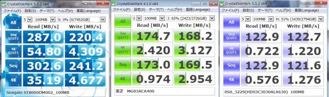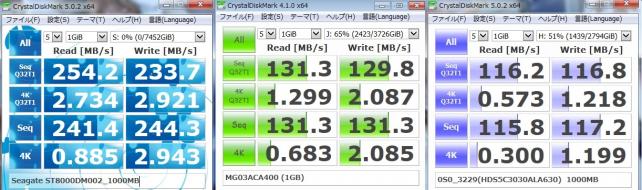 【HDD(ベンチマーク比較用)】HGST 0S0_3229(HDS5C3030ALA630)・東芝MG03ACA400