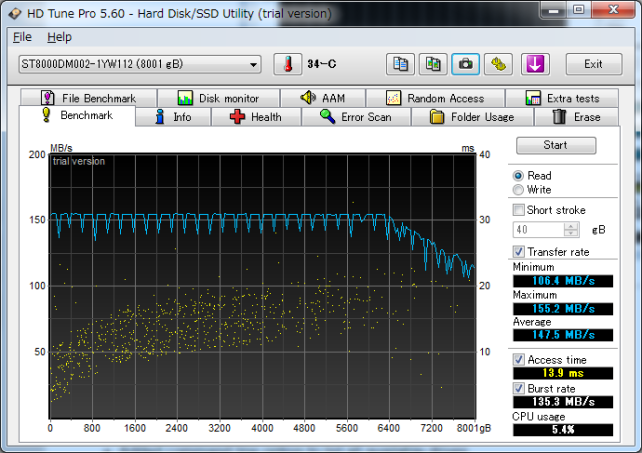 しかし、静音性は他社の5000回転台のHDDと良い勝負をしています。価格面さえどーにかなればこのHDDに多くの可能性を感じさせる部分があったのでたのしみではあります。