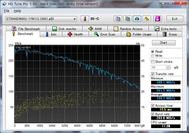 回転数:ベンダー非公表 *但しCDI読みで7200rpm(1秒当たり120回転)