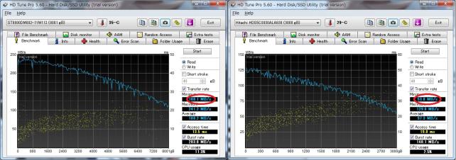 「回転数」もさることながら明らかに『プラッター&キャッシュメモリ』の違い(効果)がハッキリと目に見える形で現れています。