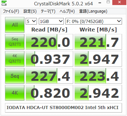 CrystalDiskMark5を使用してベンチマークしました。