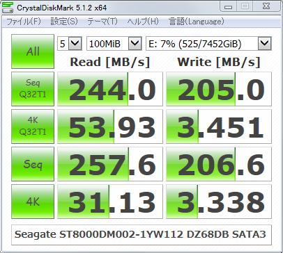参考:ST3000DM001の転送速度参考:ST3000DM001の転送速度(古いUSB3.0チップで測定したもの)