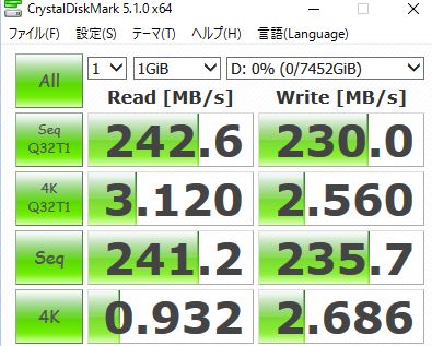 HDDをNASに入れる前に,PCに接続して,そのパフォーマンスを見てみます.