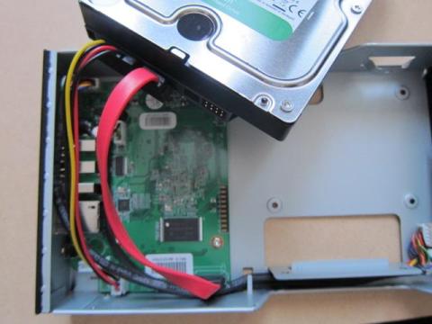 ⑤Seagate NAS HDDにSATAケーブルと電源ケールを接続し,同じ位置に戻します.