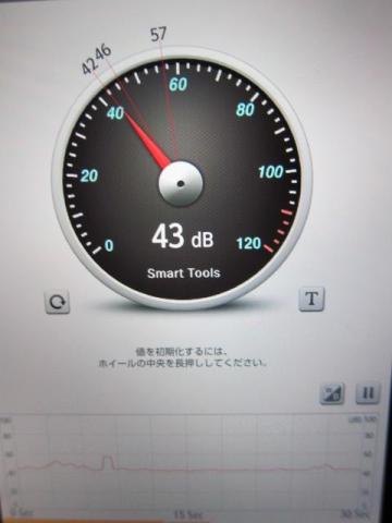 振動は直接数字で表せないので,再生中に騒音計で代用してみます.Seagate NAS HDDが45dB程度,WD Greenが43dB程度でした.