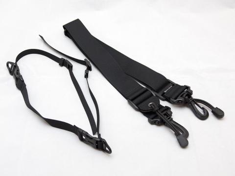 そこで JETGLIDEを調べるとシリーズ化されており、ベルト幅違い、ベルトの伸縮長違いなどいくつか種類があり、その中からメインのストラップとカメラ接続ベルト(テープ)との連結にナスカンを使っており、長さ調整の出来るメインのストラップを他のカバン等にも流用出来る「JETGLIDE 1」を購入する事にしました。