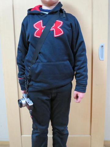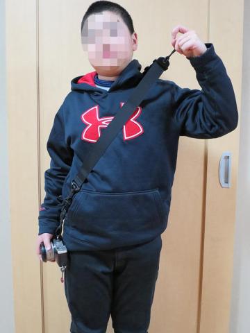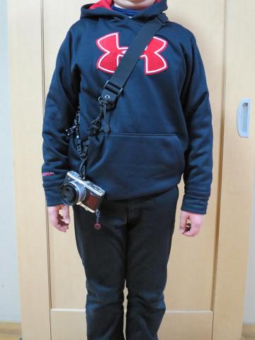 今回カメラが右側にくる様にたすき掛けしてしまいましたが、カメラが左側にくる様にたすき掛けすればカメラを押さえる手がレンズ下側を持てば、持ち替えることなく顔の前にすぐに構えられます。