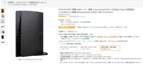 Amazonのタイムセールで見かけたギガビット対応ルーター。