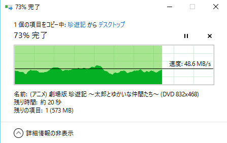 推定転送速度: 650Mbps ~ 330Mbps (80MB/sec~45MB/sec)