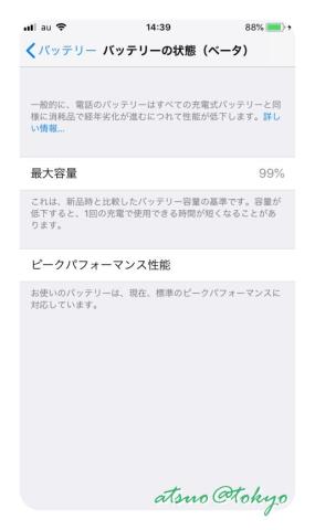 届くまで心配だったバッテリー状態は 99%との事で、こちらもまだまだ使えますね。