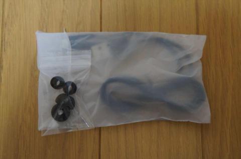 イヤーパッドと充電用のMicroUSB-USBケーブル1本が付属します。