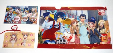 2014年冬コミ(コミックマーケット87)に出展していた「窓辺家」ブースの物販品。いつもどおりMSのOSやMSのマウスとセットで高価なセットが多かったのだけど、C87ではグッズのみのセットが販売されていた。セット内容は缶バッジ8個セット、クリアファイル、絵馬、ポストカード。