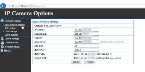 設定画面は、http://<カメラのIP>:81/admin.htm