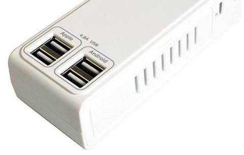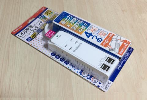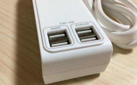 このタップを使えば、4つの「USB充電ポート」が確保出来るので大助かりです。