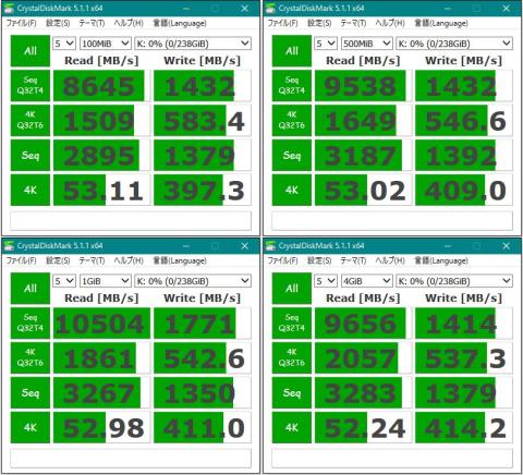 公称Read 2000MB/s、Write 650MB/sなので十分に速度発揮