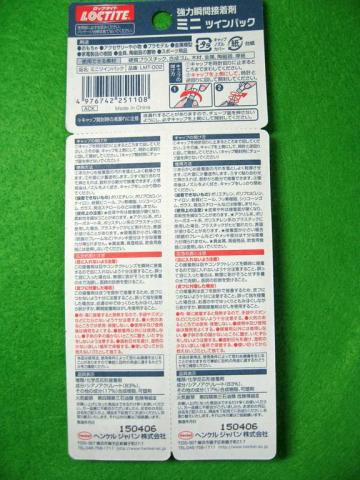 「ロックタイト」ネジゆるみ防止剤で知ってはいましたが、西ドイツの接着剤でヘンケル社製品だったのですね 瞬間接着剤は使う量も少ないので、残りは殆ど保存していても硬化して使うこともなくなり廃棄処分となります 今回のパッケージは 1g×2個 です 製造は中国です