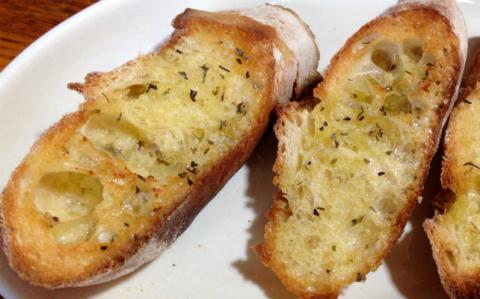 バゲットに大蒜で匂い付けしてオリーブオイルを塗って焼いたのがピッタリでした。