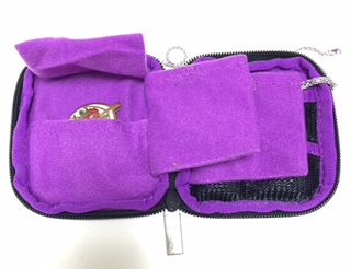 ベルクロでとめられるポケットが2個…ネックレスや大きめのリングが入ります