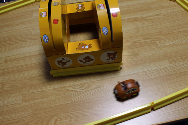 リラックマ、コリラックマの車体のみ、その他の車体も売っていたのですが、せっかく買うのならばとガレージセットにしました。ガレージからリラックマが出てくるなんて、楽しそうだ~
