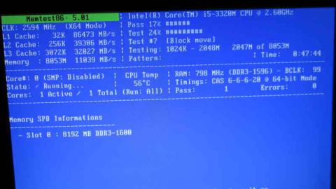 Memtest86+ でテストするために 8GB 単体で運用しています。後で 2GB を 2つ目のスロットに入れて 10GB にしとこうと思います。