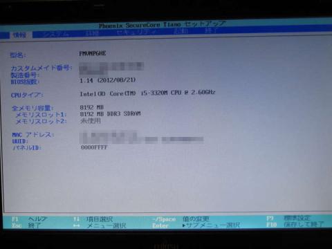 換装が終わったら、BIOS で容量が正しく認識されているかチェックしましょう。