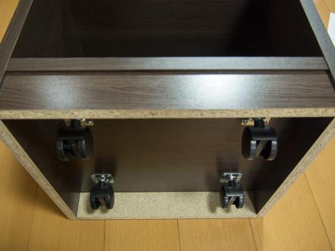 そして今回本品に決めた一番の理由のキャスターですが、化粧板により見えない様になっています。