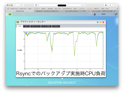 例えばDBと開発ツールなどNAS側の動作が必要な物だとすぐに100%になります。