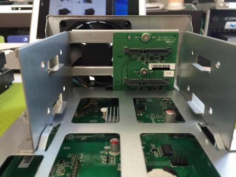 次に、組み込みですが、個人的にはReadyNASのようにフロントから入れるタイプが好みですが、カバーを開けるタイプです。