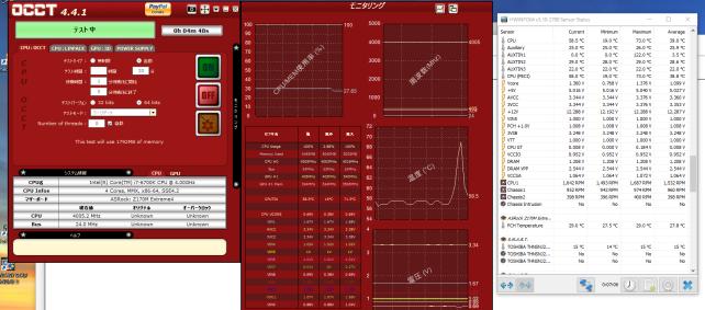 OCCTで負荷をかけて電圧変動を見てみましたが