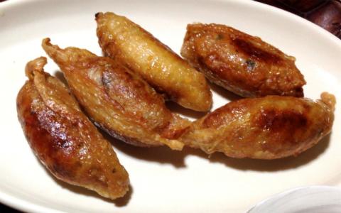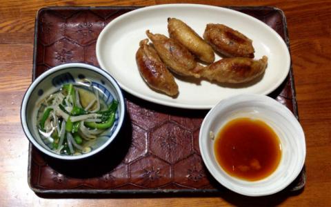 ・「鶏皮ぎょうざ」は、鶏皮で包んだぎょうざ。