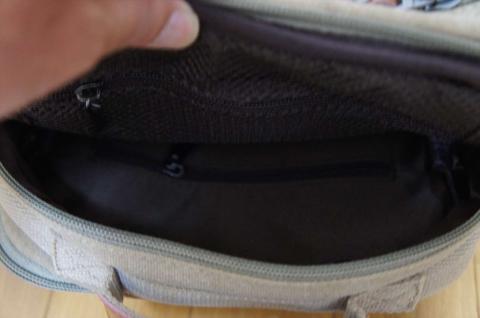 蓋を開けると手前にもファスナー付きのポケットがあります。