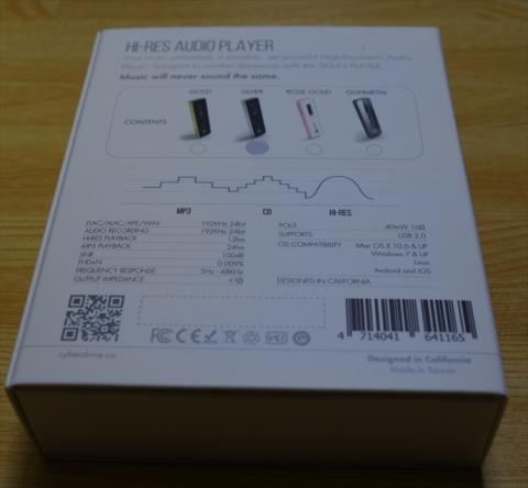 裏側には、スペックとファイル形式による音質?のイメージの表示。