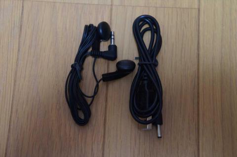 本体への給電は、USBケーブルを使います。イヤホンも付属しています。