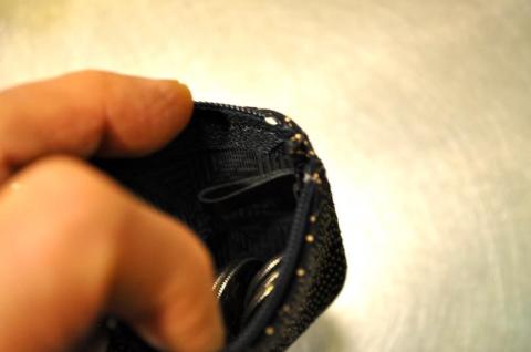 ファスナー内部には小銭が入りますが、そこのループ皮があるので、キーホルダーやチェーンを繋ぐ事が出来ます。