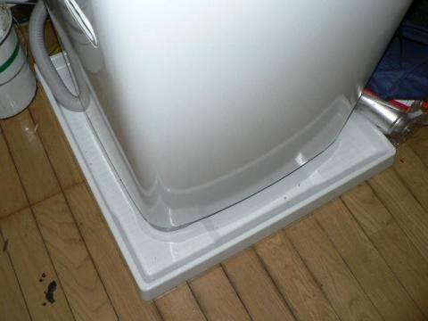 若干洗濯機と防水トレーのセンターをずらして設置しましたが、
