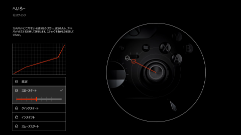 こちらはスティックの感度を調整するところです。このように倒した際の感度を調整することが可能です。実際やってみた物のどのように変わるかがいまいちわかりにくい。なんかデモゲームなり映像があればわかりやすいのですが・・・