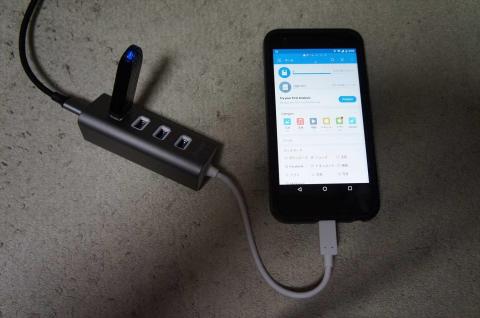 ハブに接続したUSBメモリは問題なく認識しましたが、充電には対応してないようです。