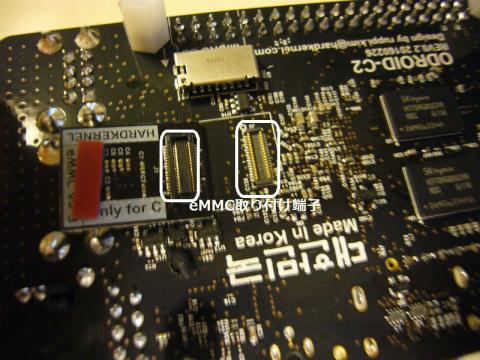 ただ、このeMMC-ボードのコネクタはデリケートそうですね。もしかしたら、抜き挿しの回数に制約があるタイプかもしれません。