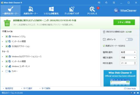 Wise Disk Cleaner は、Internet Expoloer, Chrome, Firefox , Safari のブラウザ履歴、クッキー、不要ファイルをクリーンアップするためのツールです。