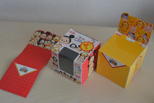 パッケージ箱を土台に、台紙を組み合わせて、、(赤箱が完成前→黄箱が完成済み)