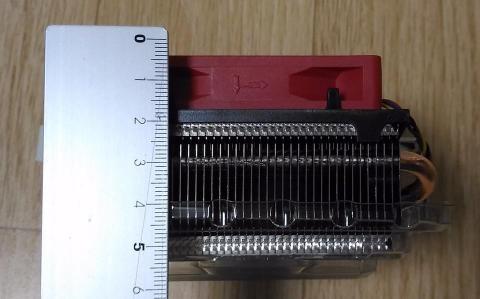 サイズはヒートシンク部で約8cm。横にパイプが出るのでもう少し大きいです。ファンは7cmタイプですね。