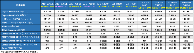 CPU関係のベンチスコア表