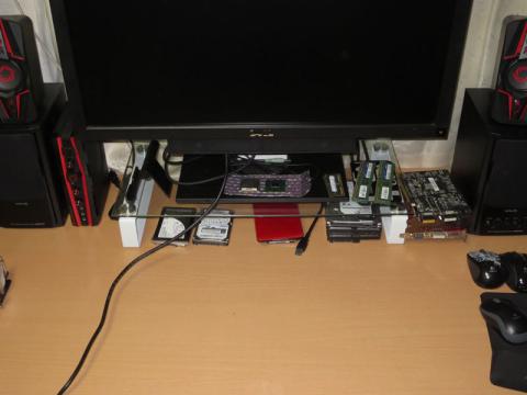 元の状態は想像にお任せしますが、モニタースタンドの下のパーツに加えてサウンドカードなどのカード類が散乱していた感じです(^-^;